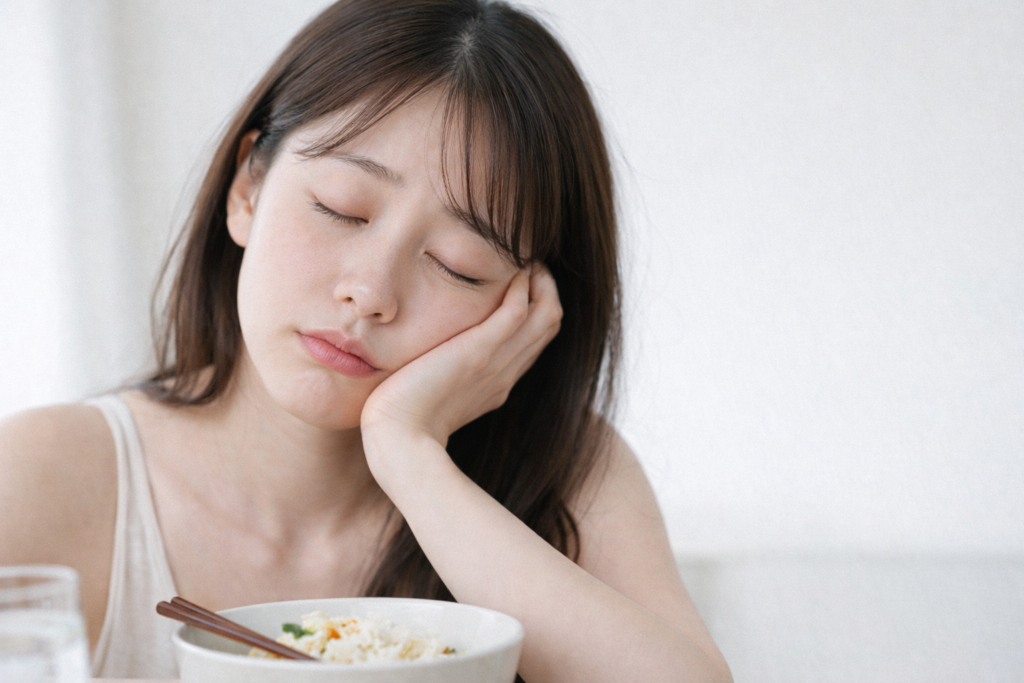 食後すぐ眠くなるのはなぜ?血糖値スパイクと肌のくすみ・たるみの関係